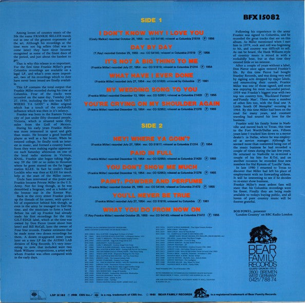 A1. I Don't Know Why I Love You 2:19 A2. Day By Day 2:30 A3. It's No Big Thing To Me 2:25 A4. What Have I Ever Done 2:17 A5. My Wedding Song To You 2:07 A6. You're Crying On My Shoulder Again 2:15 B1. Hey! Where Ya Goin'? 2:08 B2. Paid In Full 1:59 B3. You Don't Show Me Much 2:03 B4. Paint, Powder And Perfume 2:09 B5. You'll Never Be True 2:17 B6. What You Do From Now On 2:17