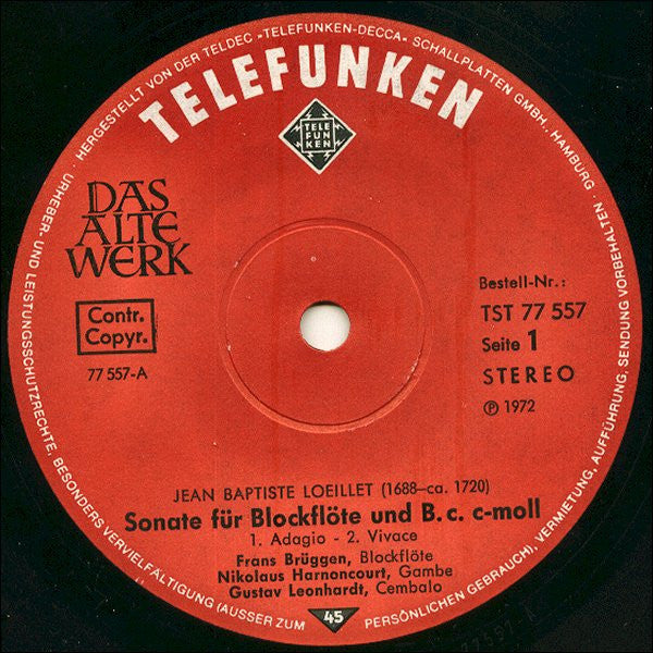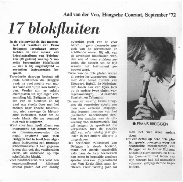 This vinyl EP was intended to promote the release of the Frans Brüggen Boxset (3LP's) - 17 Blockflöte (Recorders).