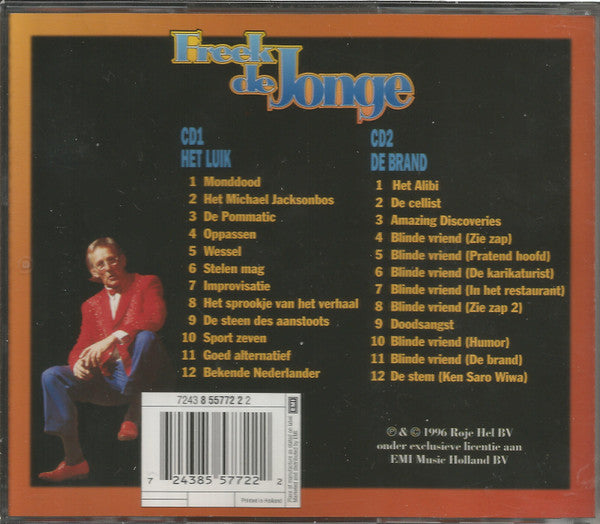 . Het Luik 1-1. Monddood 2:411-2. Het Michael Jacksonbos 0:431-3. De Pommatic 6:351-4. Oppassen 7:401-5. Wessel 5:121-6. Stelen Mag 3:071-7. Improvisatie 5:231-8. Het Sprookje Van Het Verhaal 9:091-9. De Steen Des Aanstoots 4:471-10. Sport Zeven 10:171-11. Goed Alternatief 14:231-12. Bekende Nederlander 8:41. De Brand 2-1. Het Alibi 3:302-2. De Cellist 4:062-3. Amazing Discoveries 7:052-4. Blinde Vriend (Zie Zap) 7:182-5. Blinde Vriend (Pratend Hoofd) 4:182-6. Blinde Vriend (De Karikaturist) 4:122-7. Blinde Vriend (In Het Restaurant) 7:242-8. Blinde Vriend (Zie Zap 2) 6:262-9. Doodsangst 5:452-10. Blinde Vriend (Humor) 11:032-11. Blinde Vriend (De Brand) 3:182-12. De Stem (Ken Saro Wiwa) 7:21