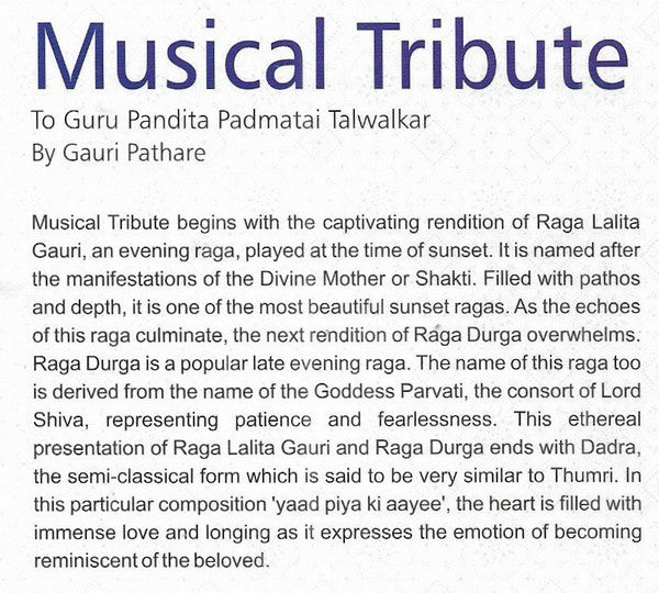1. Raga Lalita Gauri 28:052. Raga Durga 25:393. Dadra 9:30