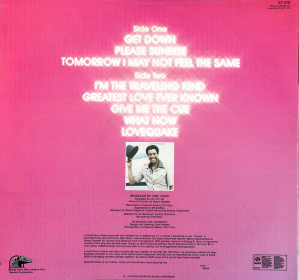 A1. Get Down A2. Please Sunrise A3. Tomorrow I May Not Feel The Same B1. I'm The Traveling Kind B2. Greatest Love Ever Known B3. Give Me The Cue B4. What Now B5. Lovequake