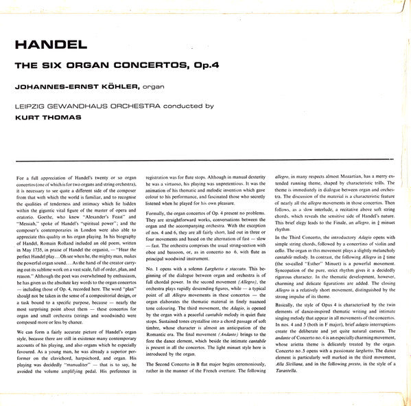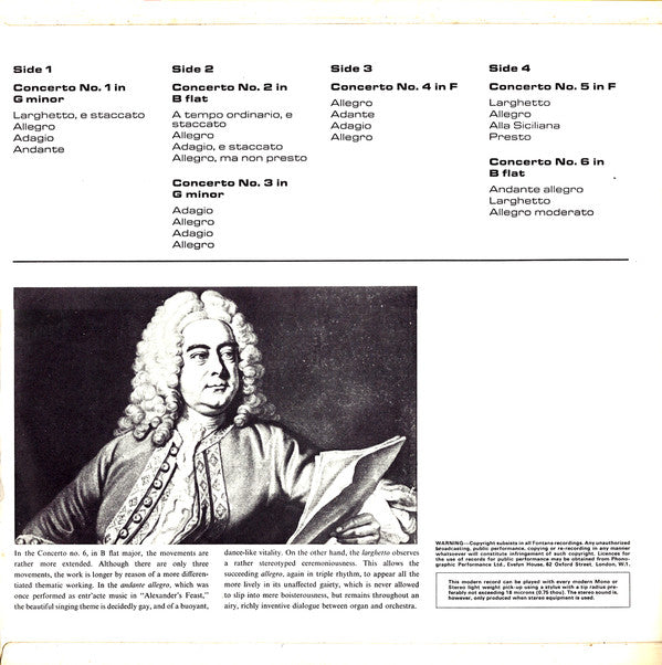 . Organ Concerto In G Minor, Op. 4 No. 1 . Organ Concerto In B Flat, Op. 4, No. 2 . Organ Concerto In G Minor, Op. 4 No. 3 . Organ Concerto In F, Op. 4 No. 4 . Organ Concerto In F, Op. 4 No. 5 . Organ Concerto In B Flat, Op. 4 No. 6