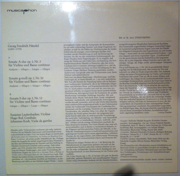 Record Company Bärenreiter-Musicaphon Pressed By Sonopress
