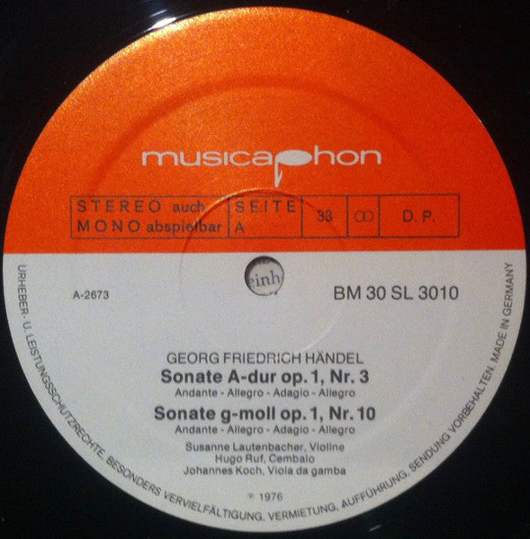 A1. Andante - Allegro - Adagio - Allegro . Sonate G-moll Op. 1, Nr. 10 Für Violine Und Basso Continuo A2. Andante - Allegro - Adagio - Allegro . Sonate F-dur Op. 1, Nr. 12 Für Violine Und Basso Continuo B. Agagio - Allegro - Largo - Allegro