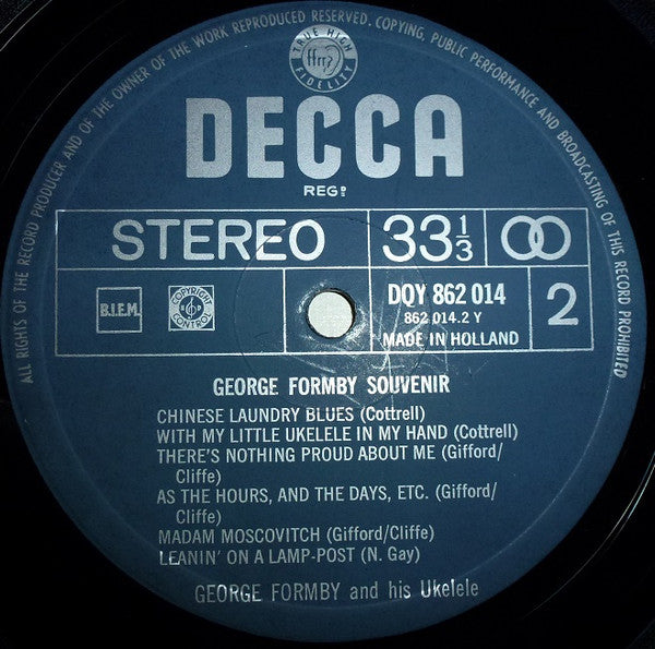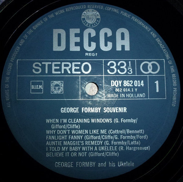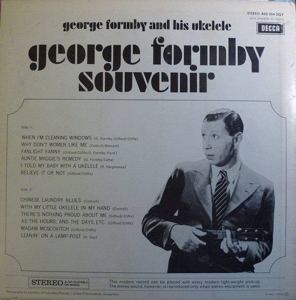 A1. When I'm Cleaning Windows A2. Why Don't Women Like Me A3. Fanlight Fanny A4. Auntie Maggie's Remedy A5. I Told My Baby With A Ukelele A6. Believe It Or Not B1. Chinese Laundry Blues B2. With My Ukelele In My Hand B3. There's Nothing Proud About Me B4. As The Hours, And The Days, Etc. B5. Madam Moscovitch B6. Leanin' On A Lamp-Post