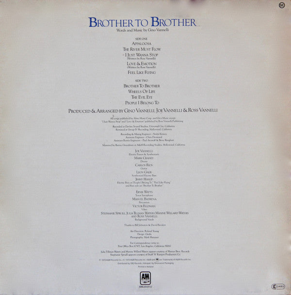 A1. Appaloosa 4:44 A2. The River Must Flow 3:48 A3. I Just Wanna Stop 3:37 A4. Love & Emotion 3:49 A5. Feel Like Flying 5:17 B1. Brother To Brother 7:16 B2. Wheels Of Life 4:14 B3. The Evil Eye 4:14 B4. People I Belong To 4:01