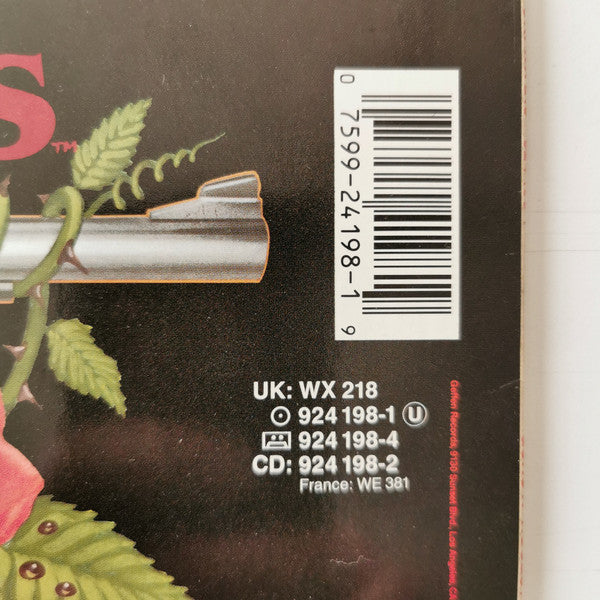 Special limited edition containing sheet of Japanese peel-off stickers. G-side was previously released on the Guns N' Roses EP "Live Like A Suicide", independently released on Uzi Suicide Records. Censored cover.