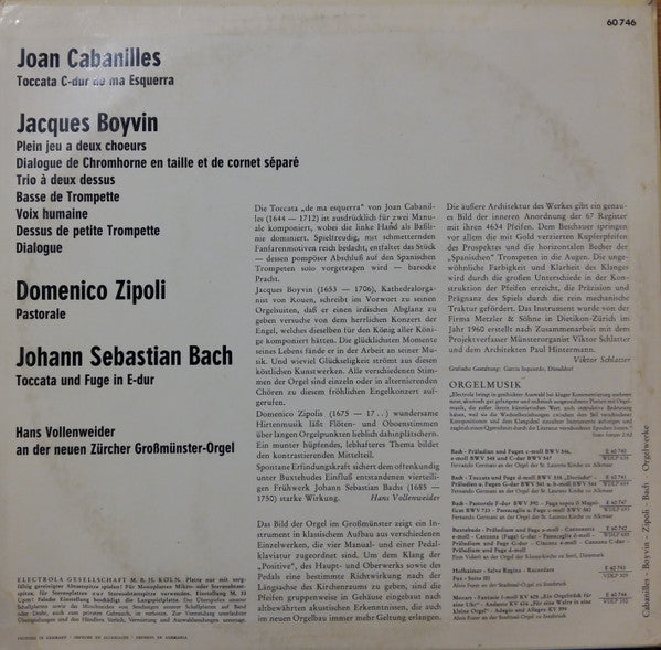 A1. Juan Cabanilles - Toccata C-Dur De Ma Esquerra A2. Jacques Boyvin - Plein Jeu A Deux Choeurs A3. Jacques Boyvin - Dialogue De Chromhorne En Taille Et De Cornet Séparé A4. Jacques Boyvin - Trio À Deux Dessus A5. Jacques Boyvin - Basse De Trompette A6. Jacques Boyvin - Voix Humaine A7. Jacques Boyvin - Dessus De Petite Trompette A8. Jacques Boyvin - Dialogue B1. Domenico Zipoli - Pastorale B2. Johann Sebastian Bach - Toccata Und Fuge In E-Dur