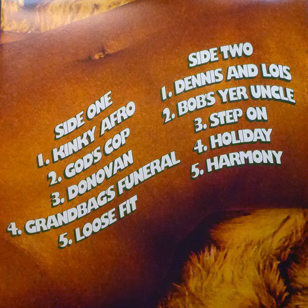 A1. Kinky Afro A2. God's Cop A3. Donovan A4. Grandbag's Funeral A5. Loose Fit B1. Dennis And Lois B2. Bob's Yer Uncle B3. Step On B4. Holiday B5. Harmony