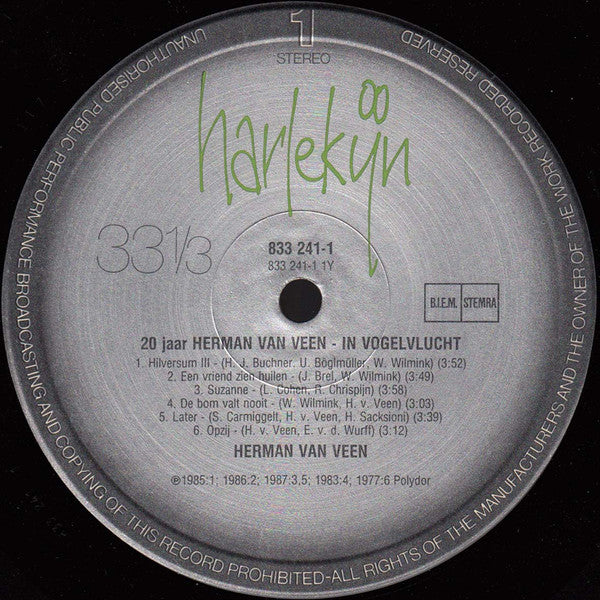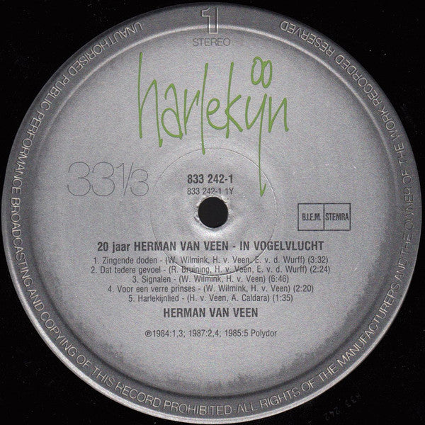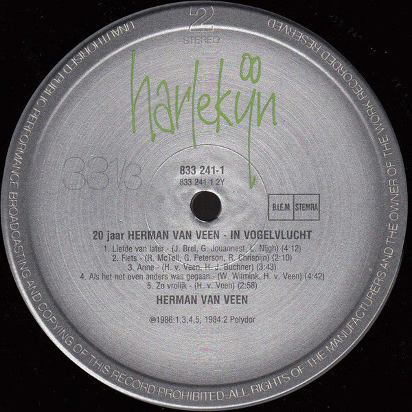 A1. Hilversum III 3:52 A2. Een Vriend Zien Huilen 3:49 A3. Suzanne 3:58 A4. De Bom Valt Nooit 3:03 A5. Later 3:39 A6. Opzij 3:12 B1. Liefde Van Later 4:12 B2. Fiets 2:10 B3. Anne 3:43 B4. Als Het Net Even Anders Was Gegaan 4:42 B5. Zo Vrolijk 2:58 C1. Zingende Doden 3:22 C2. Dat Tedere Gevoel 2:24 C3. Signalen 6:46 C4. Voor Een Verre Prinses 2:20 C5. Harlekijnlied 1:35 D1. Weet Je Nog 3:04 D2. Rozegeur 5:24 D3. Liedje 2:39 D4. Kletsnatte Clowns 3:19 D5. Ochtend In De Stad 4:02 D6. Toveren 3:24
