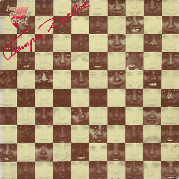Comes with printed insert with lyrics. Attached is a cardboard with removable pieces (heads) to play checkers with on the sleeve.
