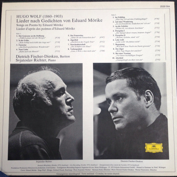 A1. Der Genesene An Die Hoffnung 4:18 A2. In Der Frühe 2:18 A3. Fussreise 2:27 A4. Neue Liebe 3:23 A5. Der Feuerreiter 4:47 A6. Jägerlied 0:52 A7. Storchenbotschaft 3:23 A8. Verborgenheit 3:08 B1. In Frühling 4:46 B2. Auf Einer Wanderung 3:18 B3. An Die Geliebte 3:31 B4. Peregrina I 1:56 B5. Peregrina II 2:54 B6. Lebe Wohl 2:14 B7. Begegnung 1:16 B8. Der Jäger 2:59 B9. Bei Einer Trauung 1:55 B10. Abschied 2:43