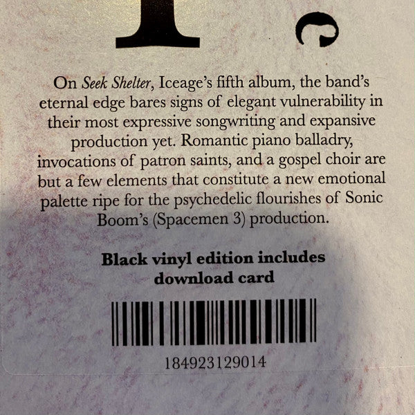 "On Seek Shelter, Iceage's fifth album, the band's eternal edge bares signs of elegant vulnerability in their most expressive songwriting and expansive production yet. Romantic piano balladry, invocations of patron saints, and a gospel choir are but a few elements the constitute a new emotional palette ripe for the psychedelic flourishes of Sonic Boom's (Spacemen 3) production.