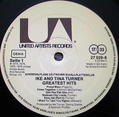A1. Proud Mary 3:15 A2. Come Together 3:37 A3. Ohh Poo Pah Doo 2:55 A4. Nutbush City Limits 2:56 A5. Sexy Ida (Part 2) 3:03 A6. I Want To Take You Higher 2:51 B1. It's Gonna Work Out Fine 3:02 B2. A Fool In Love 2:52 B3. Baby - Get It On 3:13 B4. I've Been Loving You Too Long (But I Can't Stop Now) (Live) 8:35