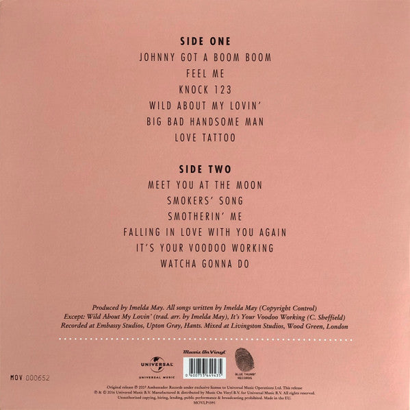 A1. Johnny Got A Boom Boom A2. Feel Me A3. Knock 123 A4. Wild About My Lovin' A5. Big Bad Handsome Man A6. Love Tattoo B1. Meet You At The Moon B2. Smokers' Song B3. Smotherin' Me B4. Falling In Love With You Again B5. It's Your Voodoo Working B6. Watcha Gonna Do