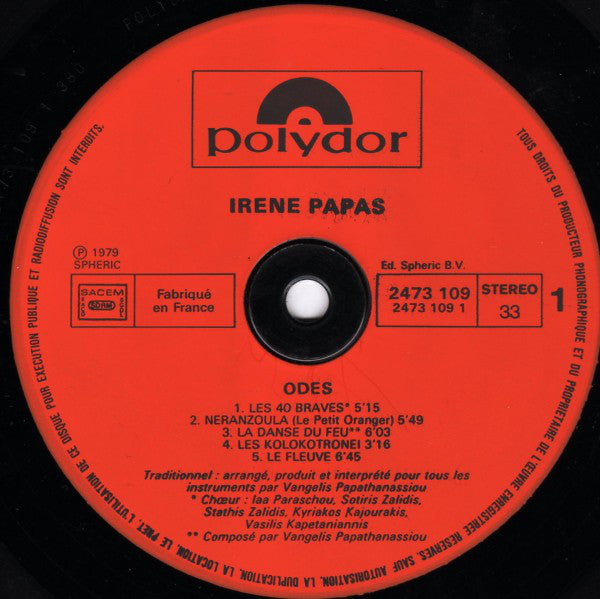 A1. Les 40 Braves 5:15 A2. Neranzoula (Le Petit Oranger) 4:49 A3. La Danse Du Feu 6:03 A4. Les Kolokotronei 3:16 A5. Le Fleuve 6:45 B1. Racines 8:50 B2. Lamento 8:29 B3. Menousis 6:37