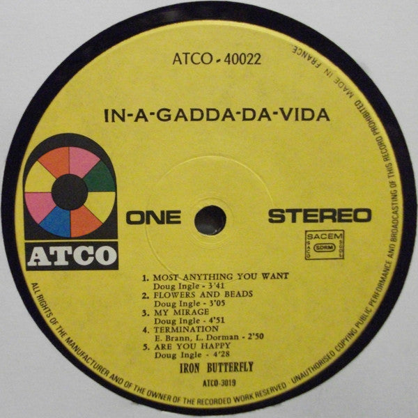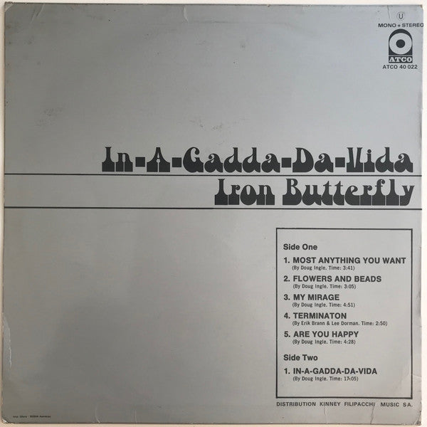 A1. Most Anything You Want 3:41 A2. Flowers And Beads 3:05 A3. My Mirage 4:51 A4. Termination 2:50 A5. Are You Happy 4:28 B1. In-A-Gadda-Da-Vida 17:05