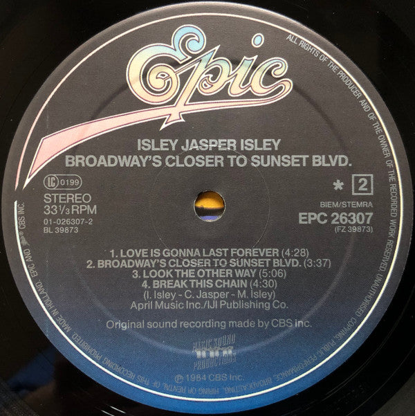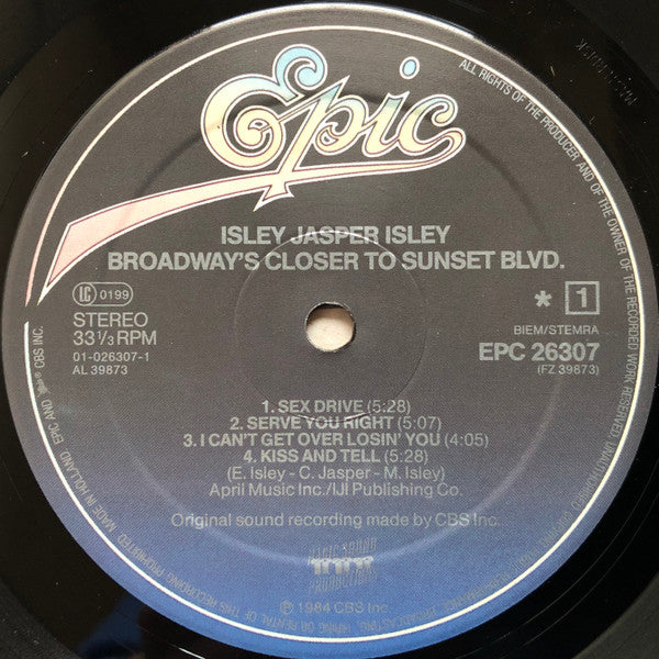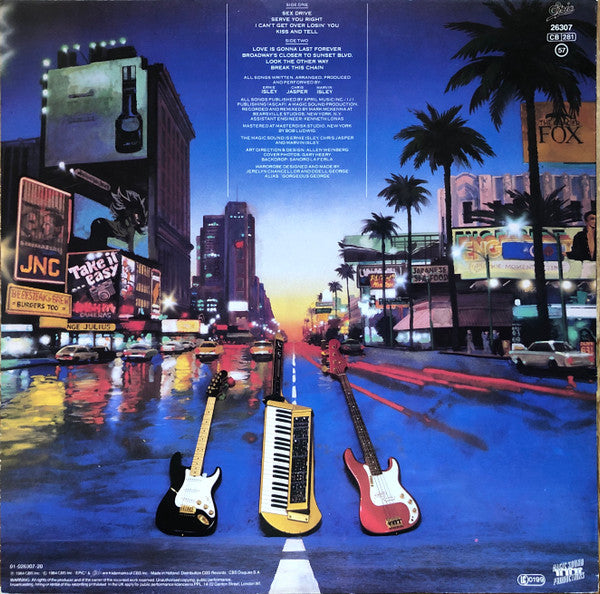 A1. Sex Drive 5:28 A2. Serve You Right 5:07 A3. I Can't Get Over Losin' You 4:05 A4. Kiss And Tell 5:28 B1. Love Is Gonna Last Forever 4:28 B2. Broadway's Closer To Sunset Blvd. 3:37 B3. Look The Other Way 5:06 B4. Break This Chain 4:30