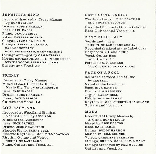 8, 11 - Recorded at Woodland Studios, Nashville, Tn.