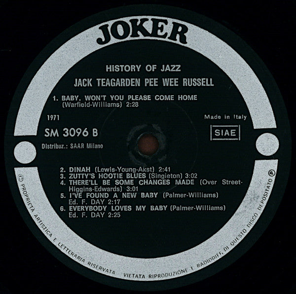 A1. Shine 4:00 A2. Saint James Infirmary 4:18 A3. The World Is Waiting For The Sunrise 4:13 A4. Big Eight Blues 4:18 B1. Baby, Won't You Please Come Home 2:28 B2. Dinah 2:41 B3. Zutty's Hootie Blues 3:02 B4. There 'll Be Some Changes Made 3:01 B5. I've Found A New Baby 2:17 B6. Everybody Loves My Baby 2:25