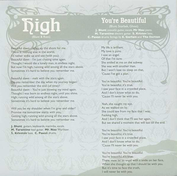 "Includes 'Wisemen', 'You're Beautiful' and 'High'