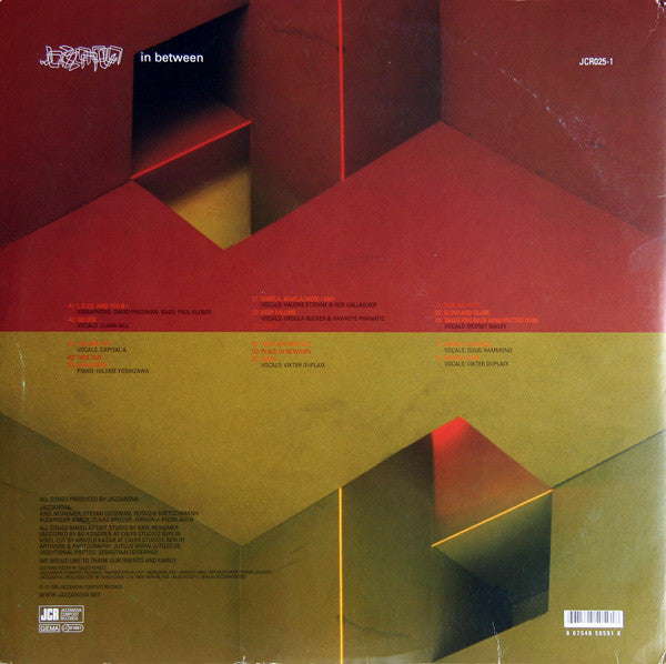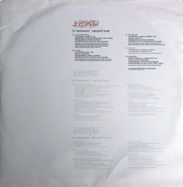 A1. L.O.V.E. And You & I 7:45 A2. No Use 4:08 B1. The One-Tet 3:50 B2. Fade Out 0:41 B3. Hanazono 8:12 C1. Mwela, Mwela (Here I Am) 7:15 C2. Keep Falling 5:21 C3. Cyclic 0:47 D1. Another New Day 5:19 D2. Place In Between 1:29 D3. Soon 4:35 E1. Sub-Atlantic 0:45 E2. Glow And Glare 5:51 E3. Takes You Back (Unexpected Dub) 5:32 F1. Dance The Dance 8:22 F2. Wasted Time 3:46