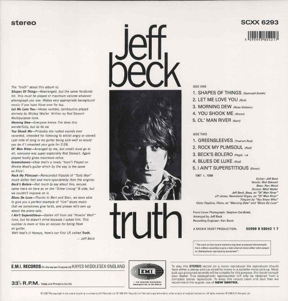 A1. Shapes Of Things A2. Let Me Love You A3. Morning Dew A4. You Shook Me A5. Ol' Man River B1. Greensleeves B2. Rock My Plimsoul B3. Beck's Bolero B4. Blues De Luxe B5. I Ain't Superstitious