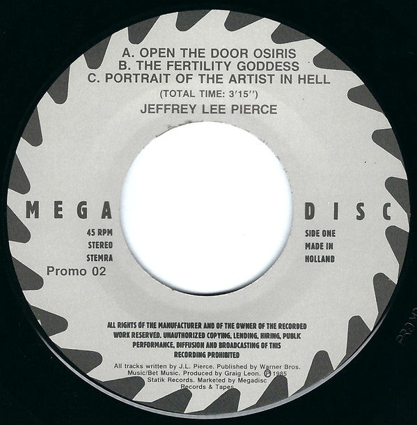 7" labels have the standard Megadisc 'sawtooth' logo with catalog number Promo 02.