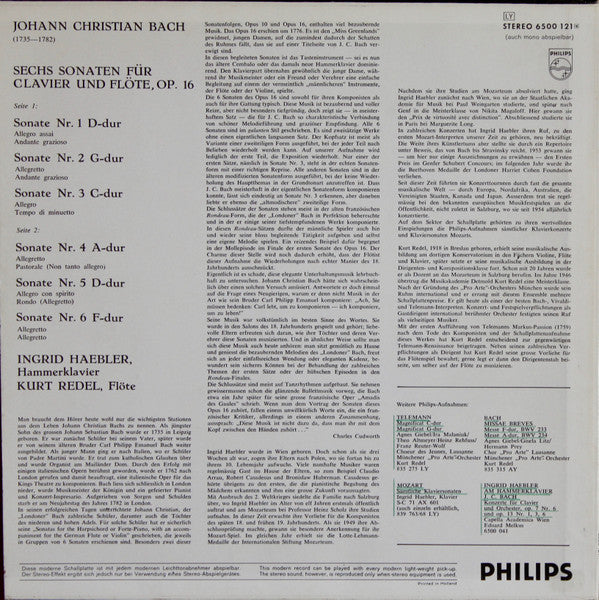 . Sonate Nr 1 D-dur . Sonate Nr 2 G-dur . Sonate Nr 3 C-dur . Sonate Nr 4 A-dur . Sonate Nr 5 D-dur . Sonate Nr 6 F-dur