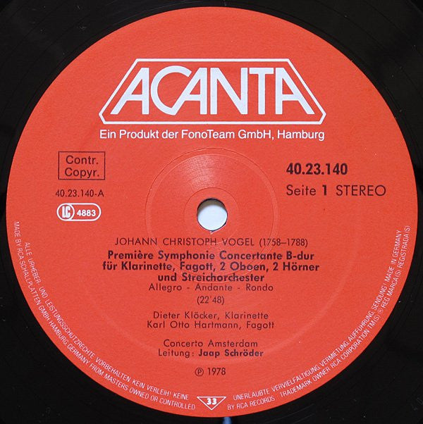 . Johann Christoph Vogel, Dieter Klöcker, Karl-Otto Hartmann, Concerto Amsterdam, Jaap Schröder - Première Symphonie Concertante B-Dur Für Klarinette, Fagott, 2 Oboen, 2 Hörner Und Streichorchester 22:48