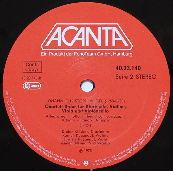 . Johann Christoph Vogel, Dieter Klöcker, Rainer Kussmaul, Jürgen Kussmaul, Anner Bylsma - Quartett B-Dur Für Klarinette, Violine, Viola Und Violoncello 17:24