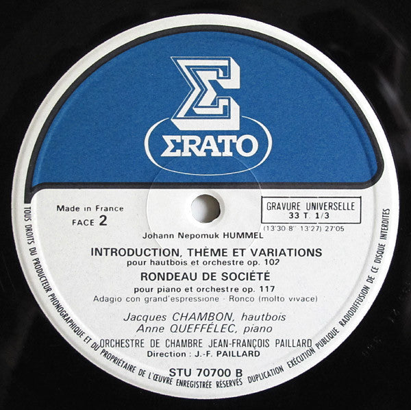 B1. Johann Nepomuk Hummel, Jacques Chambon, Orchestre De Chambre Jean-François Paillard, Jean-François Paillard - Introduction, Thème Et Variations Pour Hautbois Et Orchestre Op. 102 13:30