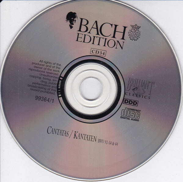 CD 34 = Cantatas / Kantaten: Ich hab in Gottes Herz und Sinn / Widerstehe duch der Sünde / Sie werden ech in den Bann tun