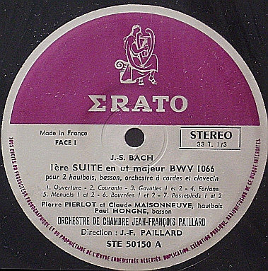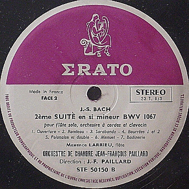 . 1re Suite En Ut Majeur BWV 1066 (Pour 2 Hautbois, Basson, Orchestre A Cordes Et Clavecin) . 2e Suite En Si Mineur BWV 1067 (Pour Flûte Solo, Orchestre A Cordes Et Clavecin)