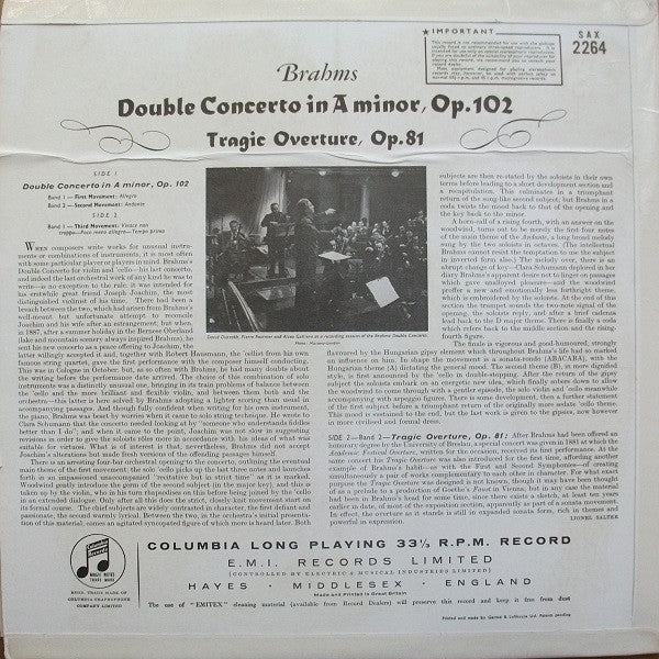 . Double Concerto in A minor, Op. 102 B2. Tragic Overture, Op. 81