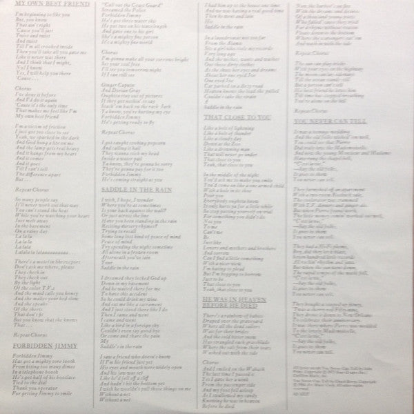 "PR" at end of label matrix and etched in runout indicates a [l130920 pressing. Issued with Lyric Sheet Insert and "Compositions from Atlantic/Atco" Inner-Sleeve. Recorded at Ardent Studios, Memphis, Tennessee and Larabee Studios, Los Angeles, California, Remixed at Ardent Runouts are etched.