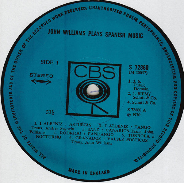 A1. Asturias 6:17 A2. Tango 2:45 A3. Canarios 1:20 A4. Fandango 3:42 A5. Nocturno 3:30 A6. Valses Poeticos 7:38 B1. Sonata In D 3:10 B2. Danse Du Corregidor 1:45 B3. Fisherman's Song 2:28 B4. The Miller's Dance 2:17 B5. Madronos 2:44 B6. La Nit De Nadal 1:10 B7. El Noy De La Mare 2:24 B8. La Maja De Goya 3:40 B9. Cordoba 6:40
