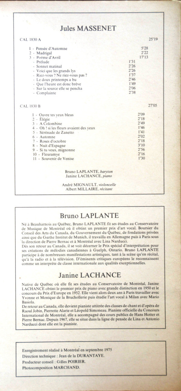 Later included as volume 1 of Le Livre D'or De La Mélodie Française.