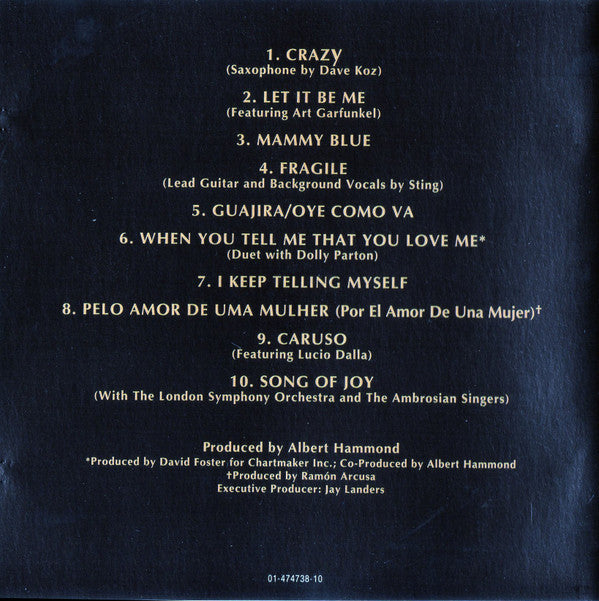 1. Julio Iglesias - Crazy 3:162. Julio Iglesias - Let It Be Me 3:063. Julio Iglesias - Mammy Blue 4:164. Julio Iglesias - Fragile 4:235. Julio Iglesias - Guajira / Oye Como Va 3:556. Julio Iglesias, Dolly Parton - When You Tell Me That You Love Me 4:007. Julio Iglesias - I Keep Telling Myself 4:188. Julio Iglesias - Pelo Amor De Uma Mulher (Por El Amor De Una Mujer) 3:529. Julio Iglesias - Caruso 5:4910. Julio Iglesias - Song Of Joy 4:38