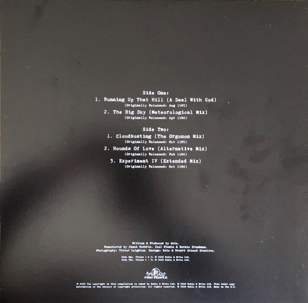A1. Running Up That Hill (A Deal With God) A2. The Big Sky (Meteorological Mix) B1. Cloudbusting (The Orgonon Mix) B2. Hounds Of Love (Alternative Mix) B3. Experiment IV (Extended Mix) . The Other Side 1 C1. Walk Straight Down The Middle C2. You Want Alchemy C3. Be Kind To My Mistakes C4. Lyra C5. Under The Ivy D1. Experiment IV D2. Ne T’Enfuis Pas D3. Un Baiser D’Enfant D4. Burning Bridge D5. Running Up That Hill (A Deal With God) 2012 Remix . The Other Side 2 E1. Home For Christmas E2. One Last Look Around The House Before We Go E3. I’m Still Waiting E4. Warm And Soothing E5. Show A Little Devotion F1. Passing Through Air F2. Humming F3. Ran Tan Waltz F4. December Will Be Magic Again F5. Wuthering Heights (Remix / New Vocal From ‘The Whole Story’) . In Others' Words G1. Rocket Man G2. Sexual Healing G3. Mná na hÉireann G4. My Lagan Love H1. The Man I Love H2. Brazil (Sam Lowry's First Dream) H3. The Handsome Cabin Boy H4. Lord Of The Reedy River H5. Candle In The Wind