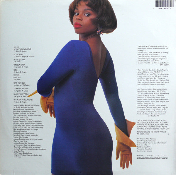 A1. Hot Little Love Affair 4:17 A2. Do Me Right 4:02 A3. He's So Jealous 4:28 A4. U Needa Lover 5:22 A5. U.B.U. 5:21 B1. Over You 4:20 B2. Love Triangle 5:04 B3. After All This Time 3:50 B4. Lookin' Out For # 1 4:33 B5. Hit Me (With Your Love) 5:10