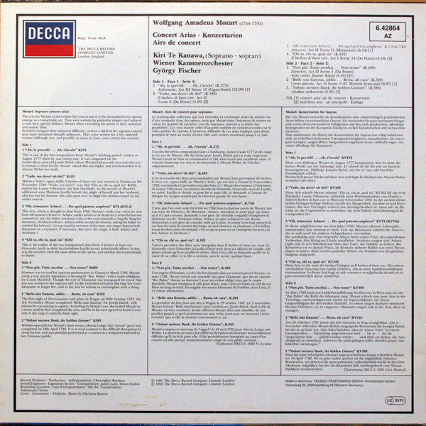 A1. Andromeda: Ah, Lo Previdi!...Ah, T'Involva (K272) 12:09 A2. Il Burbero Di Buon Core: Vado, Ma Dove? Oh, Dei! (K583) 4:05 A3. Artaserse: Oh, Temerario Arbace!...Per Quel Paterno Amplesso (K79) 6:34 A4. Il Burbero Di Buon Core: Chi Sa, Chi Sa, Qual Sia (K582) 3:18 B1. Idomeneo: Non Più, Tutto Ascoltai,,,Non Termer (K490) 9:54 B2. Cerere Placata: Bella Mia Fiamma, Addio...Resta, Oh Cara (K528) 9:07 B3. Nehmt Meinen Dank, Ihr Holden Gönner! (K383) 3:35