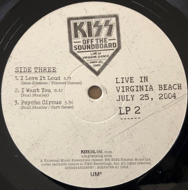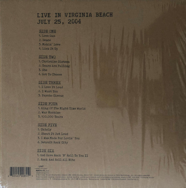 A1. Love Gun 4:55 A2. Deuce 3:57 A3. Makin' Love 4:02 A4. Lick It Up 5:57 B1. Christine Sixteen 3:22 B2. Tears Are Falling 4:04 B3. She 7:43 B4. Got To Choose 4:06 C1. I Love It Loud 4:13 C2. I Want You 8:42 C3. Psycho Circus 5:34 D1. King Of The Night Time World 3:52 D2. War Machine 5:24 D3. 100,000 Years 8:41 E1. Unholy 3:36 E2. Shout It Out Loud 3:13 E3. I Was Made For Lovin' You 6:12 E4. Detroit Rock City 6:33 F1. God Gave Rock 'N' Roll To You II 6:37 F2. Rock And Roll All Nite 7:44