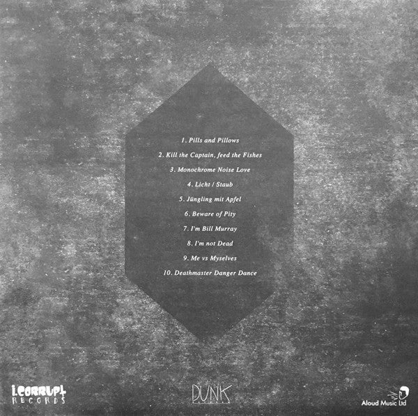 A1. Pills And Pillows A2. Kill The Captain, Feed The Fishes A3. Monochrome Noise Love B4. Licht / Staub B5. Jüngling Mit Apfel C6. Beware Of Pity C7. I'm Bill Murray D8. I'm Not Dead D9. Me vs Myselves D10. Deathmaster Danger Dance