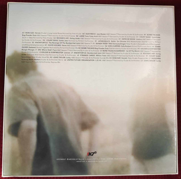 A1. Roni Size - Heroes (Kruder's Long Loose Bossa) A2. Alex Reece - Jazz Master (K&D Session™) B1. Bomb The Bass - Bug Powder Dust (K&D Session™) B2. Lamb - Trans Fatty Acid (K&D Session™) C1. Count Basic - Speechless (Drum 'N' Bass) C2. Rockers Hi-Fi - Going Under (K&D Session™) D1. Depeche Mode - Useless (K&D Session™) D2. Count Basic - Gotta Jazz (Richard Dorfmeister Remix) E1. Aphrodelics - Rollin' On Chrome (Wild Motherfucker Dub) E2. Knowtoryus - The Revenge Of The Bomberclaad (K&D Session™) F1. Trüby Trio - Donaueschingen (Peter Kruder's Donaudampfschifffahrtsgesellschaftskapitänskajütenremix) G1. David Holmes - Gone (K&D Session™) G2. Sofa Surfers - Sofa Rockers (Richard Dorfmeister Remix) H1. Mama Oliver - Eastwest (Stoned Together Resmoked) H2. Bomb The Bass - Bug Powder Dust (Dub) H3. Kruder & Dorfmeister - Boogie Woogie I1. Sin - Where Shall I Turn? (K&D Session™ Vol. 2) I2. Bone Thugs-N-Harmony - 1st Of Tha Month (K&D Session™) I3. Kruder & Dorfmeister - Lexicon J1. Knowtoryus - Bomberclaad Joint (K&D Session™) J2. Rockers Hi-Fi - Going Under (Evil Love And Insanity Dub) J3. Strange Cargo - Million Town (K&D Session™) K1. Count Basic - Speechless (Peter Kruder Vocal Mix) K2. Lewis Taylor - Lucky (K&D Session™) (Kruder & Dorfmeister Suicide Mix) K3. Roni Size - Heroes (Peter Kruder Powercut Mix) L1. Madonna - Nothing Really Matters (Kruder & Dorfmeister Remix) L2. United Future Organization - L.O.V.E. (K&D Session™) (Remixed By Kruder & Dorfmeister) L3. Lewis Taylor - Lucky (K&D Session™) (Kruder & Dormeister Reprise Mix)