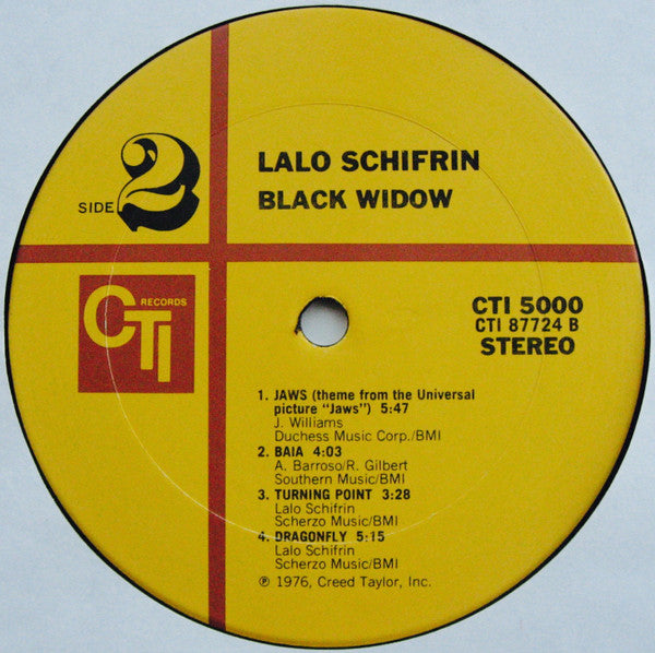 A1. Black Widow 4:15 A2. Flamingo 4:28 A3. Quiet Village 3:59 A4. Moonglow / Theme From Picnic 5:36 B1. Jaws 5:47 B2. Baia 4:03 B3. Turning Point 3:28 B4. Dragonfly 5:15