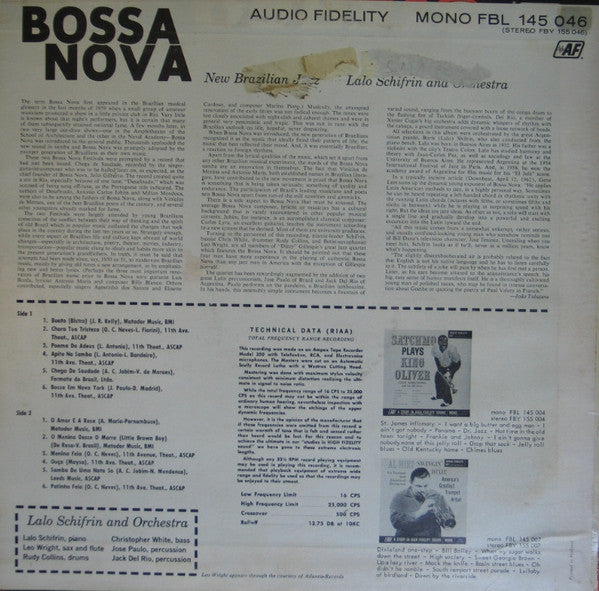 A1. Boato (Bistro) 2:27 A2. Chora Tua Tristeza 2:37 A3. Poema Do Adeus 3:17 A4. Apito No Samba 2:49 A5. Chega De Saudade 5:19 A6. Bossa Em Nova York 1:52 B1. O Amor E A Rosa 3:34 B2. O Menino Desce O Morro (Little Brown Boy) 2:28 B3. Menina Feia 2:25 B4. Ouça 3:56 B5. Samba De Uma Nota So 3:44 B6. Patinho Feio (aka Ugly Duckling) 3:01