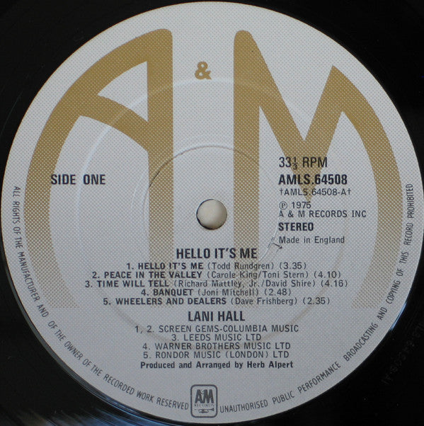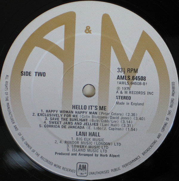 A1. Hello It's Me 3:35 A2. Peace In The Valley 4:10 A3. Time Will Tell 4:16 A4. Banquet 2:48 A5. Wheelers And Dealers 2:35 B1. Happy Woman Happy Man 2:35 B2. Exclusively For Me 3:40 B3. Save The Sunlight 3:14 B4. Sweet Jams And Jellies 3:31 B5. Corrida De Jancada 1:54