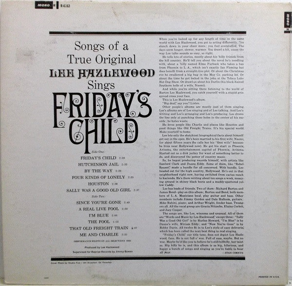 'Songs Of A True Original Lee Hazlewood Sings Friday Child' (Complete Title on Backcover)
