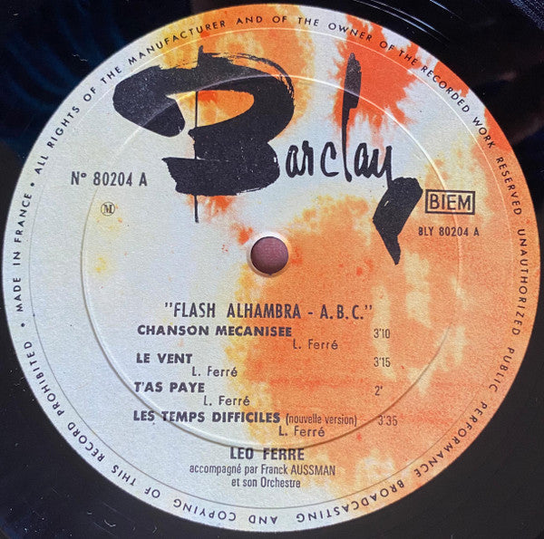 Recorded At L'Alhambra Recorded At A.B.C. Printed By Imprimerie GLORY - Paris